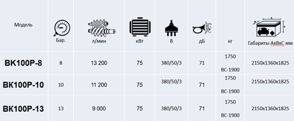 Таблица. Модельный ряд ВК100Р